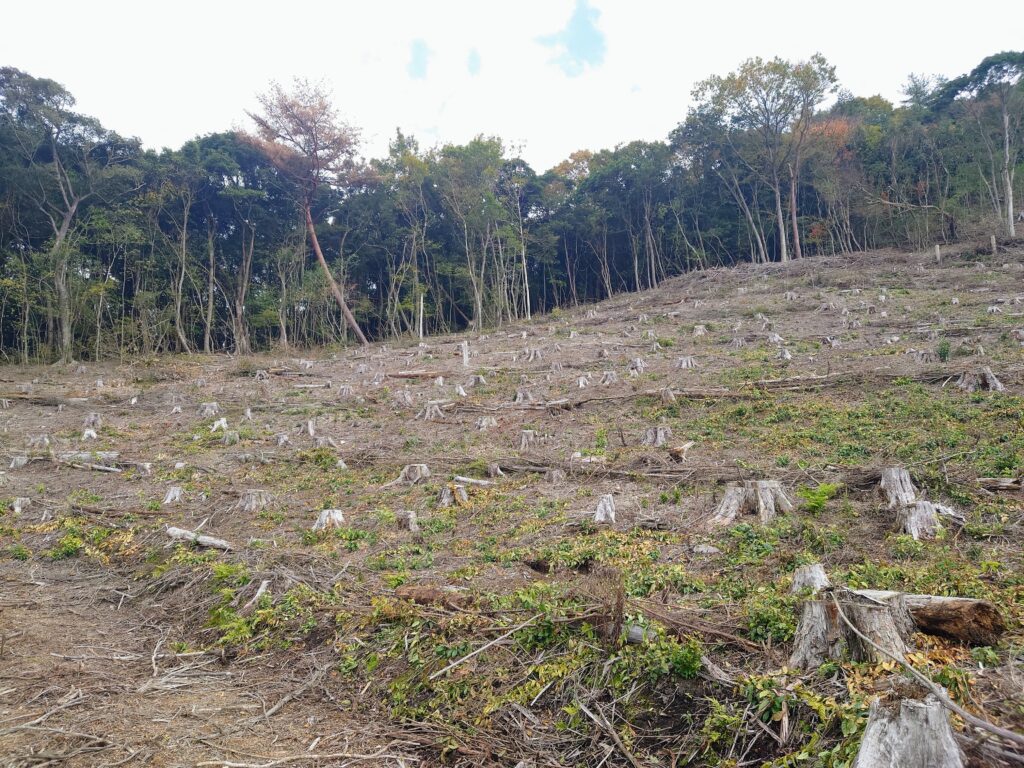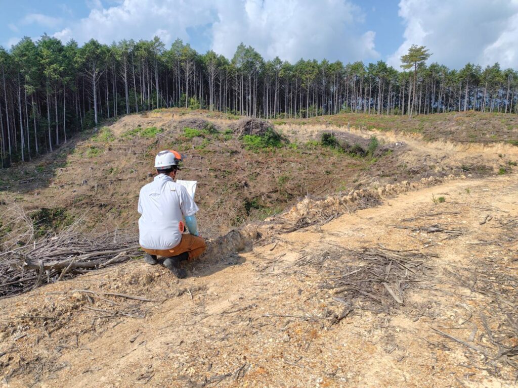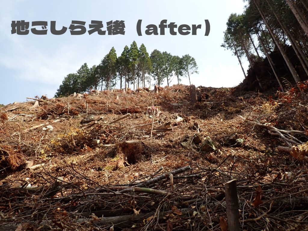 伐採後の土地を整え、苗木植付やその他の作業がしやすいようにする準備作業です。