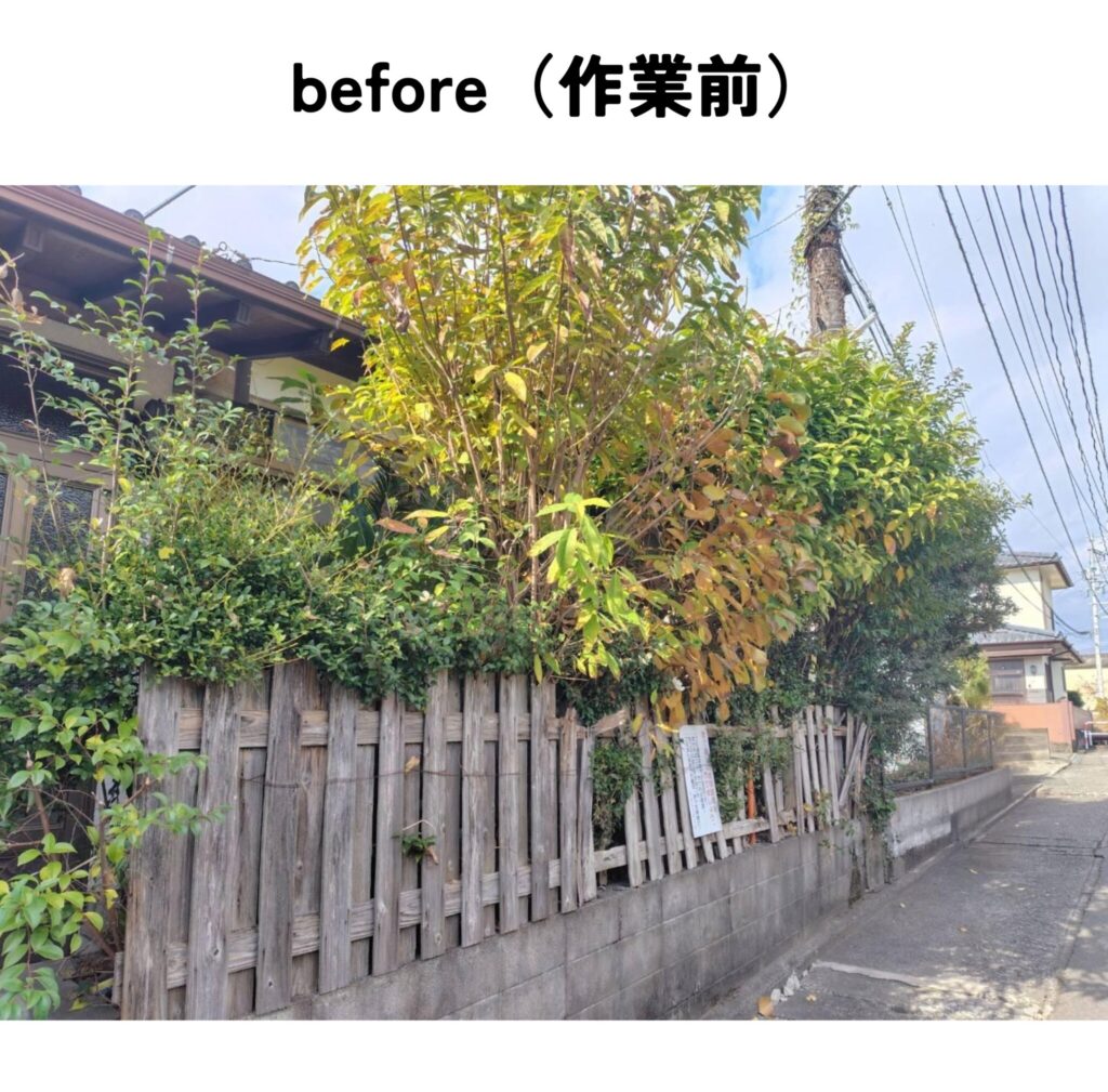 ご自宅敷地内の木が大きくなり過ぎているので、塀の高さに合わせて伐採して欲しいというご依頼でした。