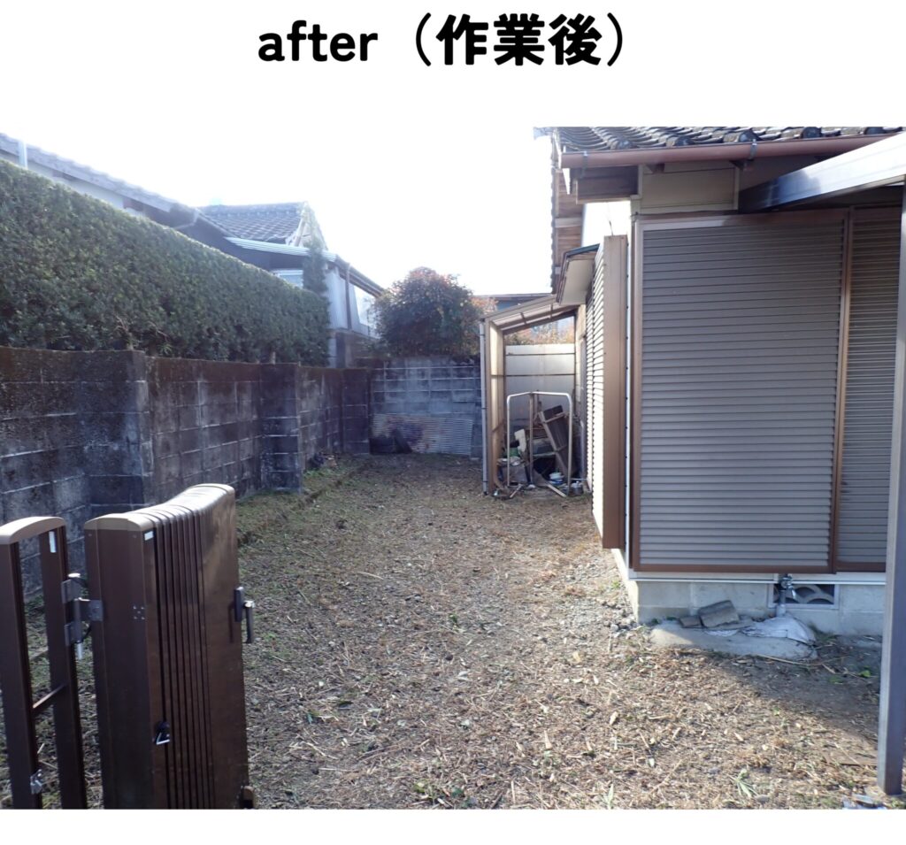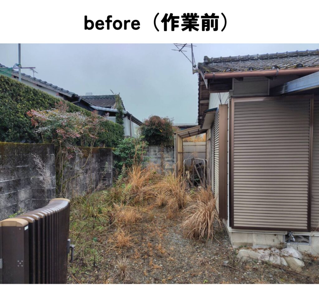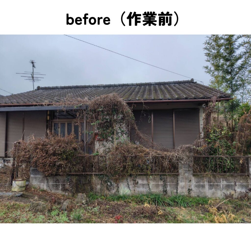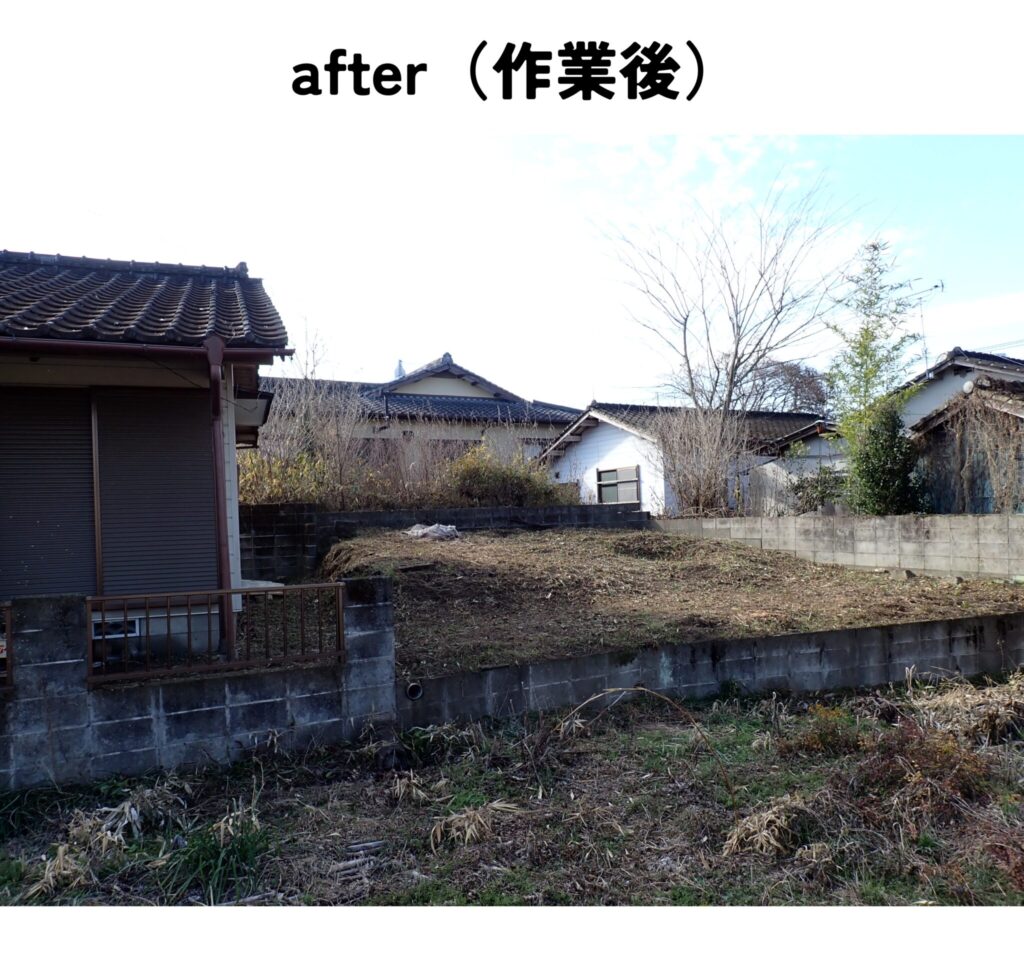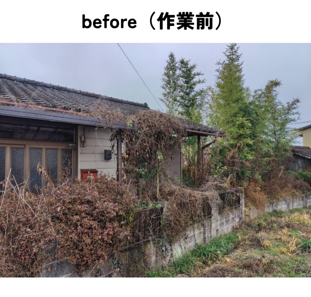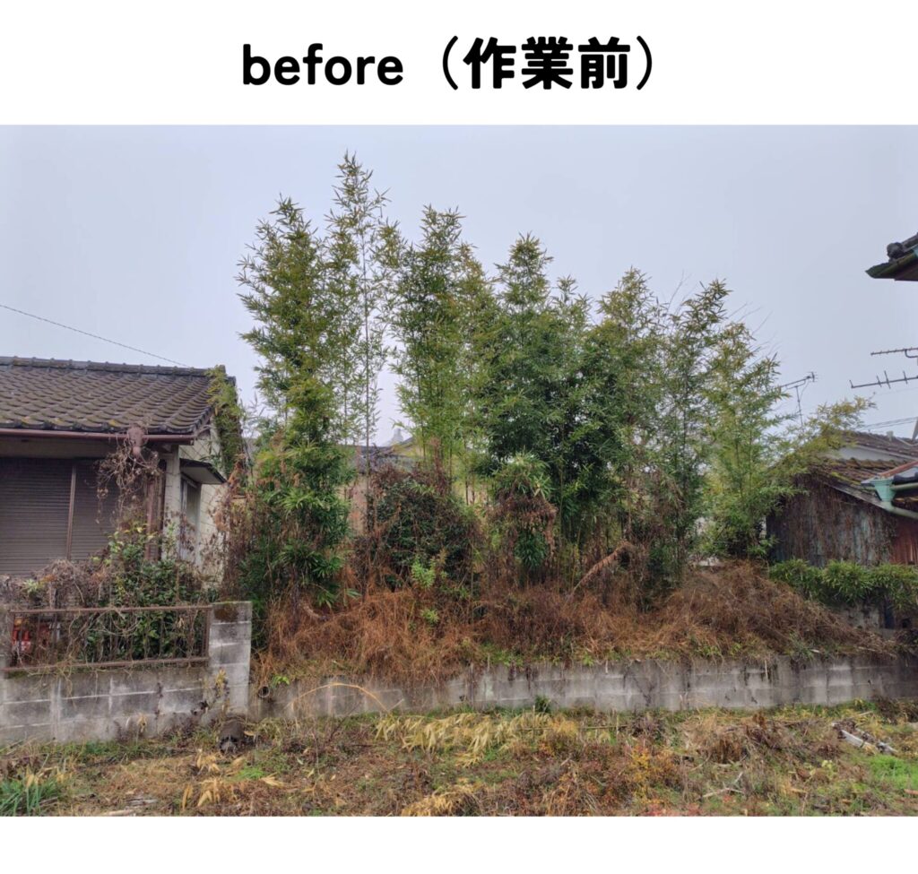 家周りの草刈り作業と、家横にある畑の竹切りと草刈り作業をして欲しいというご依頼でした。
